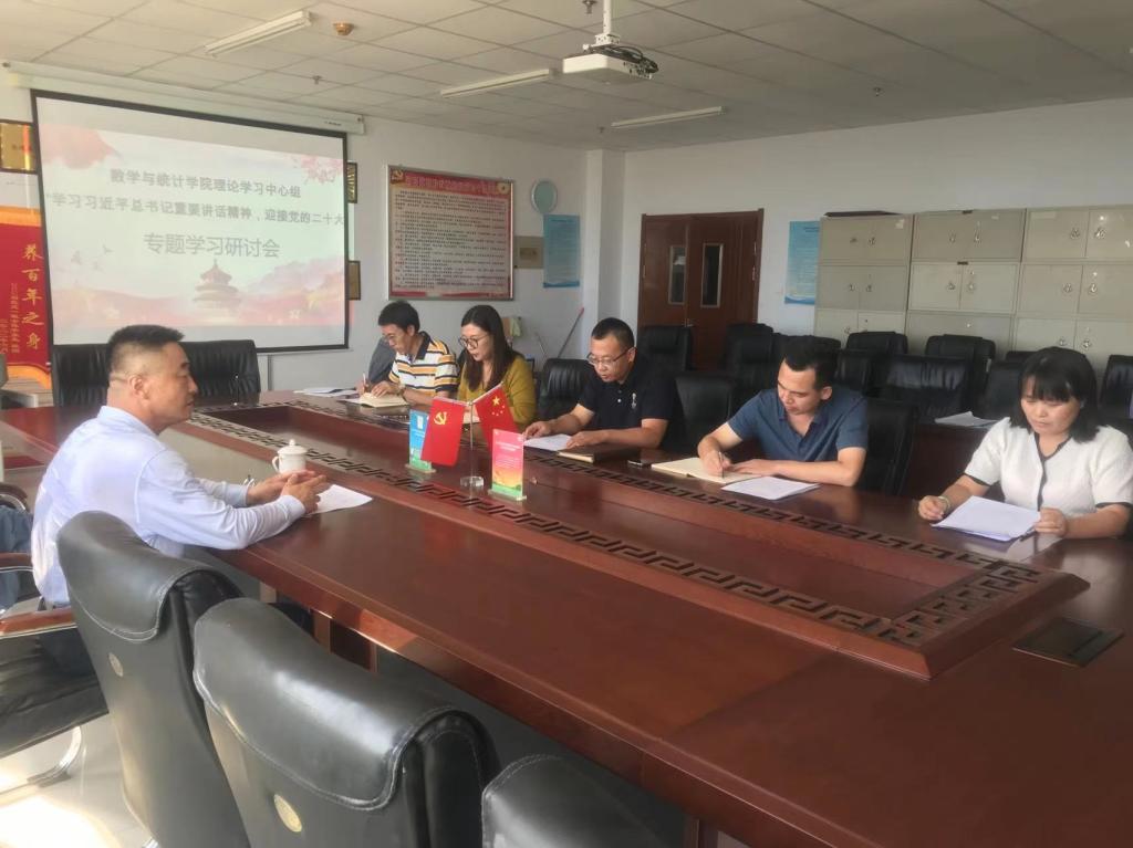 8月31日,数学与统计学院理论学习中心组在逸夫楼805会议室召开专题研讨会,专题学习交流研讨习近平总书记在省部级主要领导干部“学习习近平总书记重要讲话精神,迎接党的二十大”专题研讨班上的重要讲话精神。会议由党总支书记张宏智主持,校长刘春参加了研讨会。