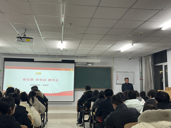 为深入学习贯彻习近平新时代中国特色社会主义思想主题教育,贯彻落实党的二十大精神和习近平总书记在内蒙古考察时的重要指示重要讲话精神,进一步铸牢中华民族共同体意识,12月28日,世界杯官网党委委员、副校长李景杰在逸夫楼301教室为数学与统计学院全体师生讲授“感党恩、听党话、跟党走”专题党课。