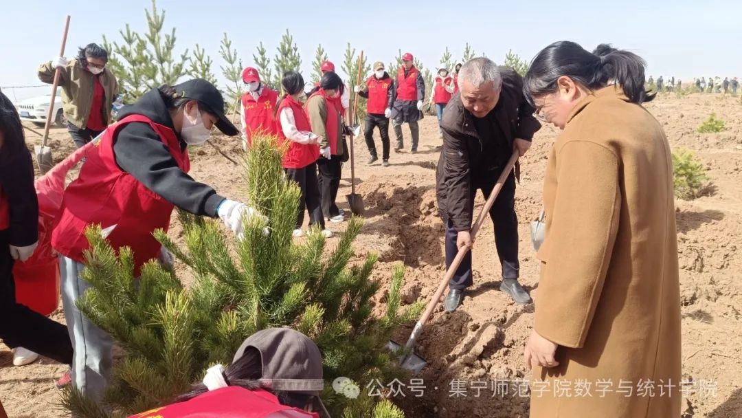 当下,“碳达峰、碳中和”目标引领着全社会的绿色转型,环保理念日益深入人心,但生态建设仍任重道远。为贯彻落实劳动教育,使同学们感知劳动价值,树立绿色发展观和绿色环保意识,4月16日上午数学与统计学院于乌兰察布市义务植树基地开展“植此青绿,向新生长”劳动教育实践活动,办公室主任任立华、辅导员刘紫玉及我院50名同学参加本次活动。