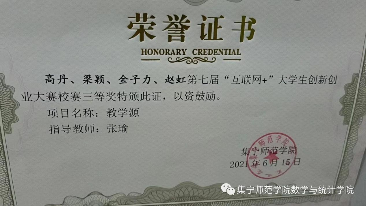 良好的班风、学风是取得优异成绩的前提,同学们的共同努力是取得优异成绩的保证。班级内各个班委分工明确,责任到人,班级日常管理稳定有序。同学们经常在一起探讨学习上的问题,互帮互助,共同进步。在院领导组织的班级上课情况抽检中,该团支部上课纪律良好且未出现缺课的情况。2020年获得数学与统计学院“团结奋进班集体”。该团支部同学的荣誉也是数不胜数,如:2020“开拓杯”校园文学综合实践获奖同学共计27人,获内蒙古自治区2020“开拓杯”英语作文大赛奖共计27人,获内蒙古自治区2021“开拓杯”英语作文大赛奖共计36人。