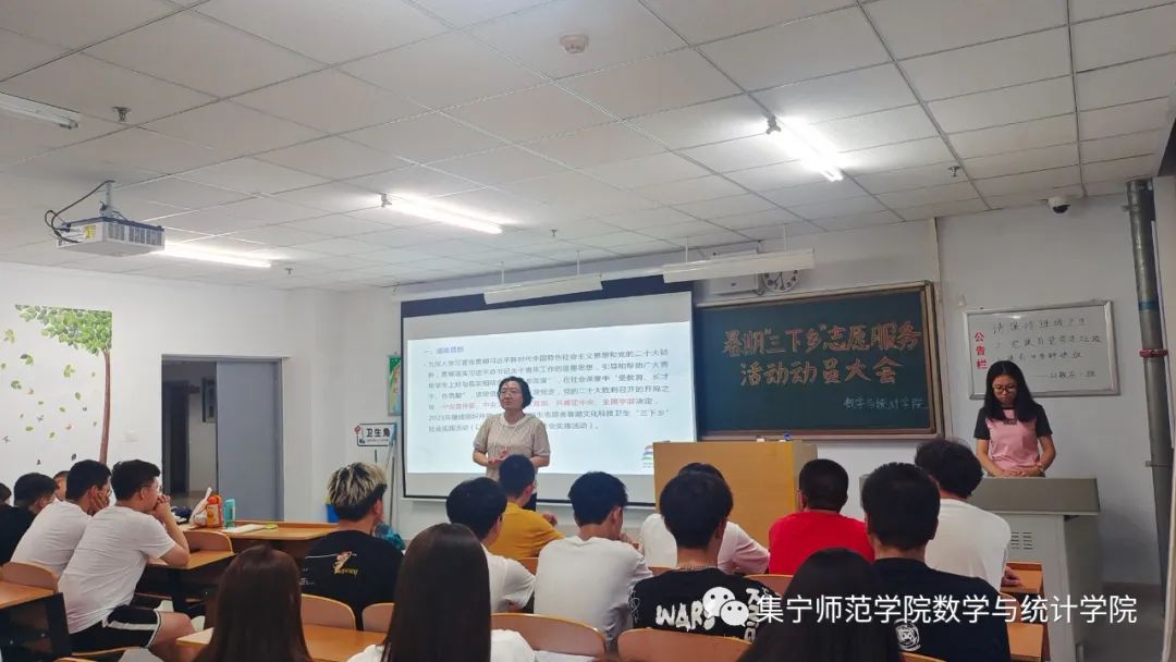 为深入学习宣传贯彻习近平新时代中国特色社会主义思想和党的二十大精神,贯彻落实习近平总书记关于青年工作的重要思想,引导和帮助广大青年学生上好与现实相结合的“大思政课”,2026世界杯官方合作网站数学与统计学院于7月3日在逸夫楼301室开展2023年大学生暑期“三下乡”实践志愿服务活动动员会。