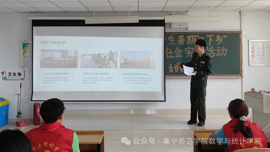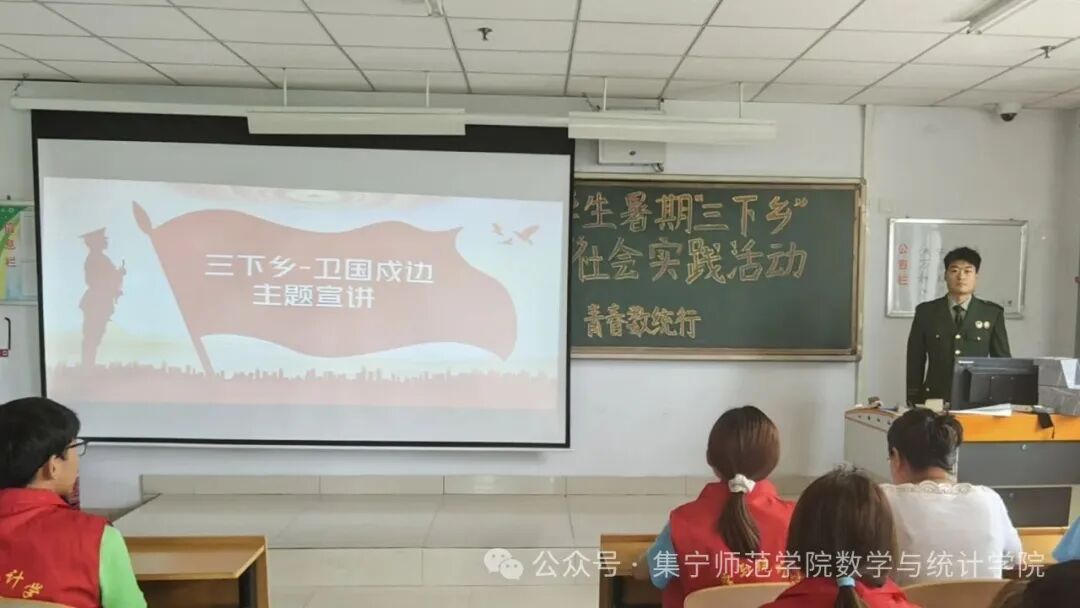 数学与统计学院青春数统行卫国戍边服务队于7月11日上午在逸夫楼2Y301开展实践活动—“退伍不褪色·故事汇”。本次活动邀请我院三名退役士兵讲述他们的卫国戍边故事,活动由实践队负责人刘珊如主持。