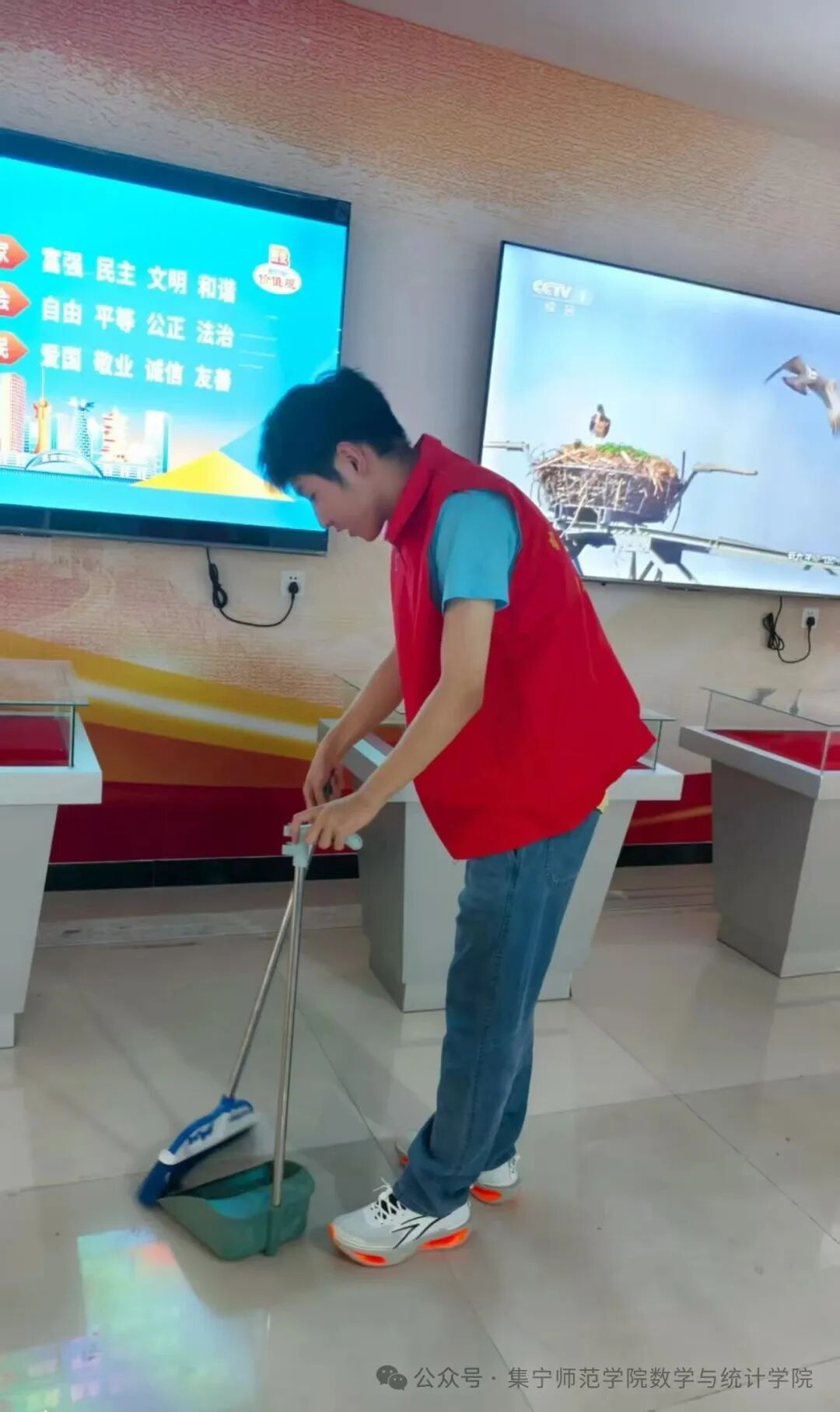 2024级数学与应用数学二班赵炫投身社区卫生清扫,他挥动扫帚认真清理路面的零散垃圾,俯身擦拭公共设施上的浮尘,细心拾捡墙角缝隙里的杂物,用汗水换来环境的清爽,让志愿服务的热忱悄然传递。