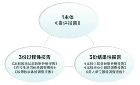 新一轮审核评估建立了“1+3+3”多维立体评价体系,全面客观评价本科教育教学质量。该体系包括《自评报告》、三份过程性报告(《本科教学状态数据分析报告》《在校生学习体验调查报告》《教师教学体验调查报告》)和三份结果性报告(《本科生就业数据分析报告》《本科毕业生跟踪调查报告》《用人单位跟踪调查报告》),从不同角度呈现教育和人才培养情况,形成全链条质量评价反馈和改进机制。