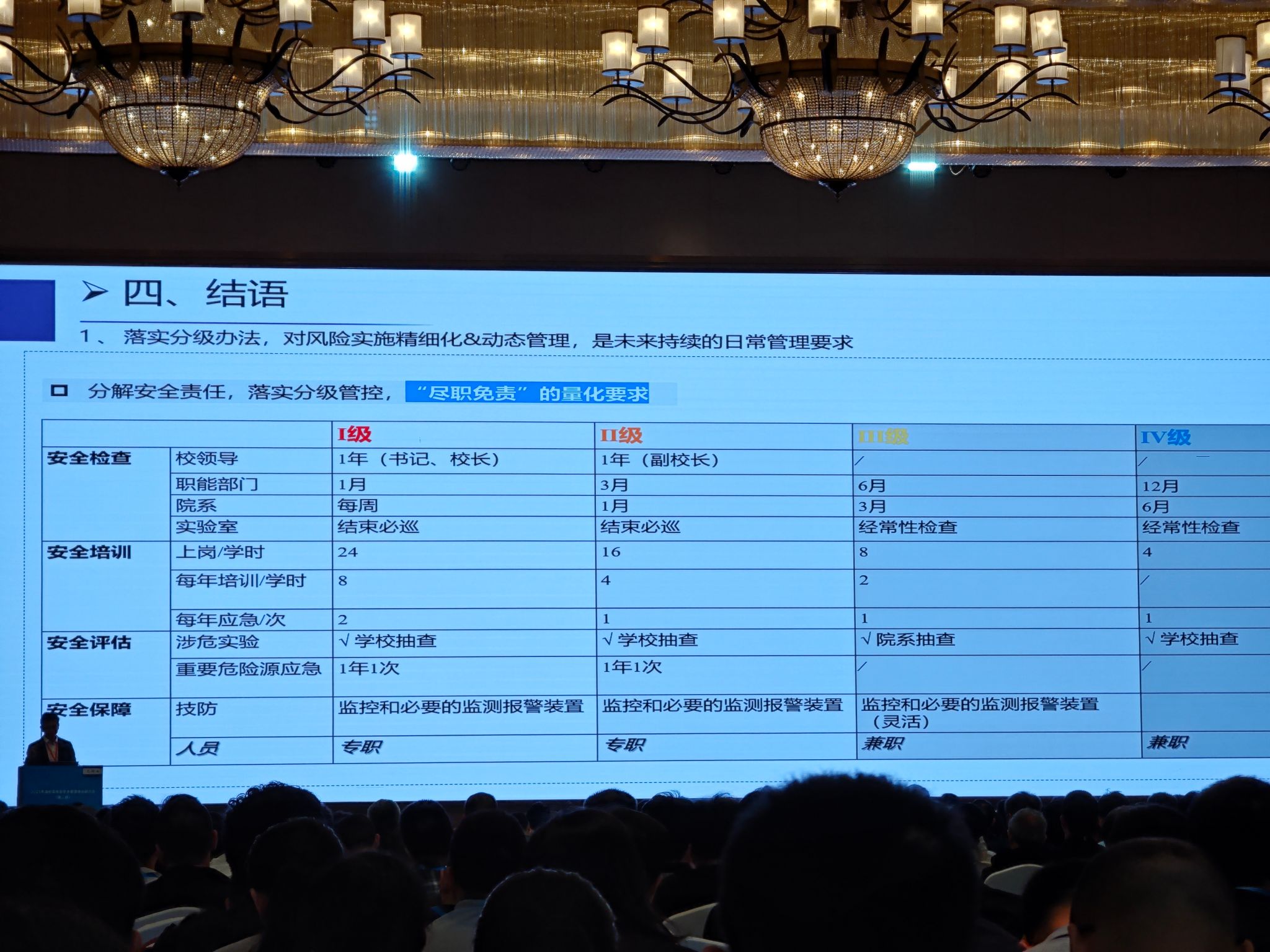 会议围绕“统筹高质量发展与高水平安全”的核心目标,设置专题报告、案例分享及技术展示三大板块。清华大学艾德生教授对《高等学校实验室安全检查项目表(2025版)》进行权威解读,强调隐患分级分类管理及智能化风险防控的重要性。复旦大学、浙江大学等高校专家分享了实验室安全检查整改经验,提出“四查一督”“数智管控体系”等创新管理模式。