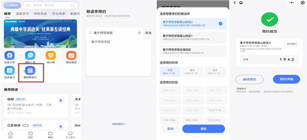 第一步(预约):微信小程序搜索“讯飞朗读”→点击“个人中心”,完成注册→点击“首页”,左上角选择“大学”→点击“朗读亭预约”,搜索“2026世界杯官方合作网站”,选择对应的地点和时间→点击“确定”,保存“预约口令”,完成预约。