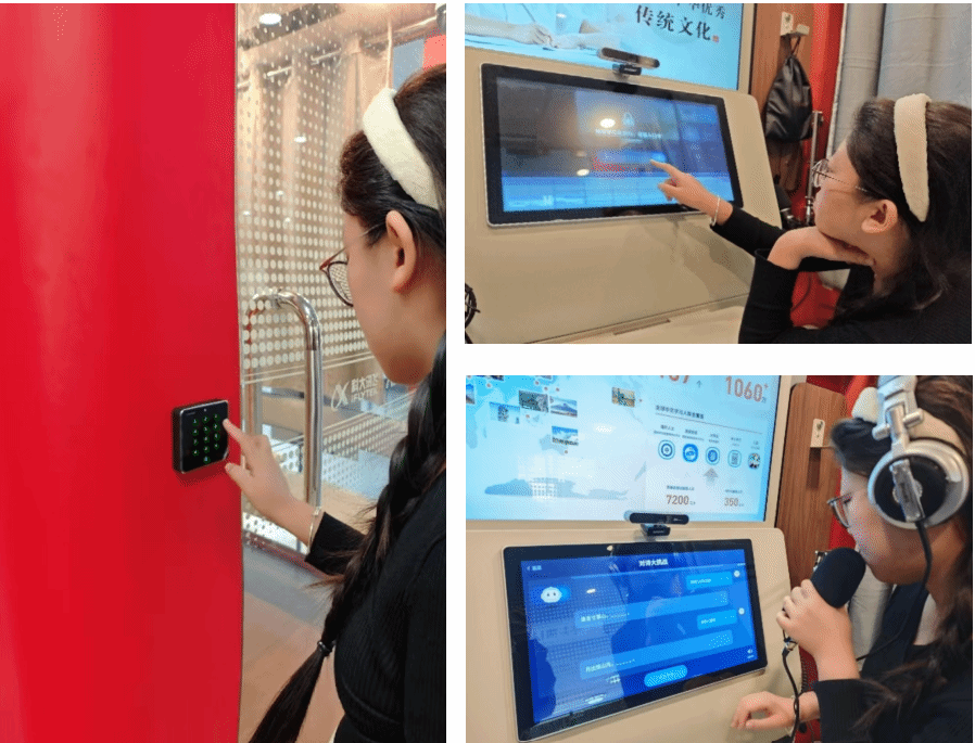 第二步(使用):进入朗读亭,在显示屏处输入“预约口令”,打开界面→选择相应专栏,进行朗读。