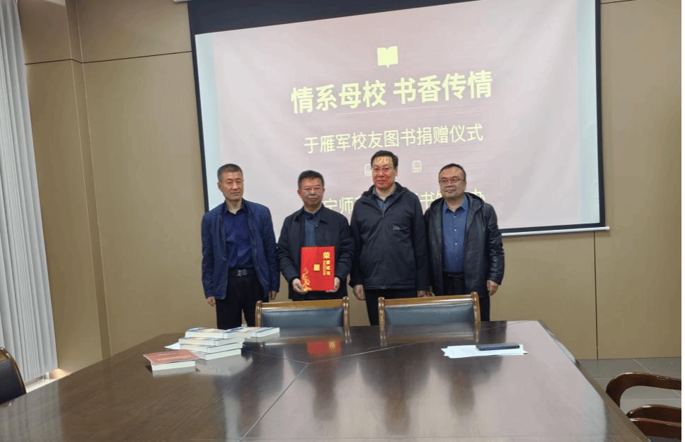 4月9日,世界杯官网知名校友、山西大同籍作家于雁军重返母校,向校图书馆捐赠了个人红色纪实文学著作《雪域曙光》,并表示将陆续捐赠个人珍藏的近1000册旧版红色经典书籍,以书香回馈母校,助力校园红色文化传承。校图书馆馆长魏智所、外国语学院党总支书记王世青、化学与化工学院院长董永胜等热情接待了于雁军校友。