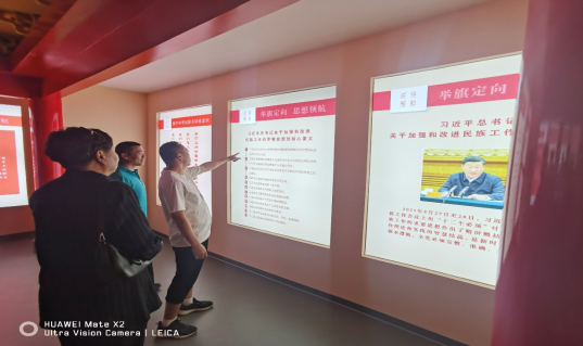 在讲解员的指引下,参加活动师生依次参观了“举旗定向 思想领航”“多元一体 浩荡华风”“纲举目张 同心筑梦”主题展厅。师生通过一张张图片、一段段文字,深刻感受到集宁区各民族人民在中国共产党的领导下,团结奋进共同建设美丽家园的感人事迹,更加认识到铸牢中华民族共同体意识是维护各民族根本利益的必然要求。