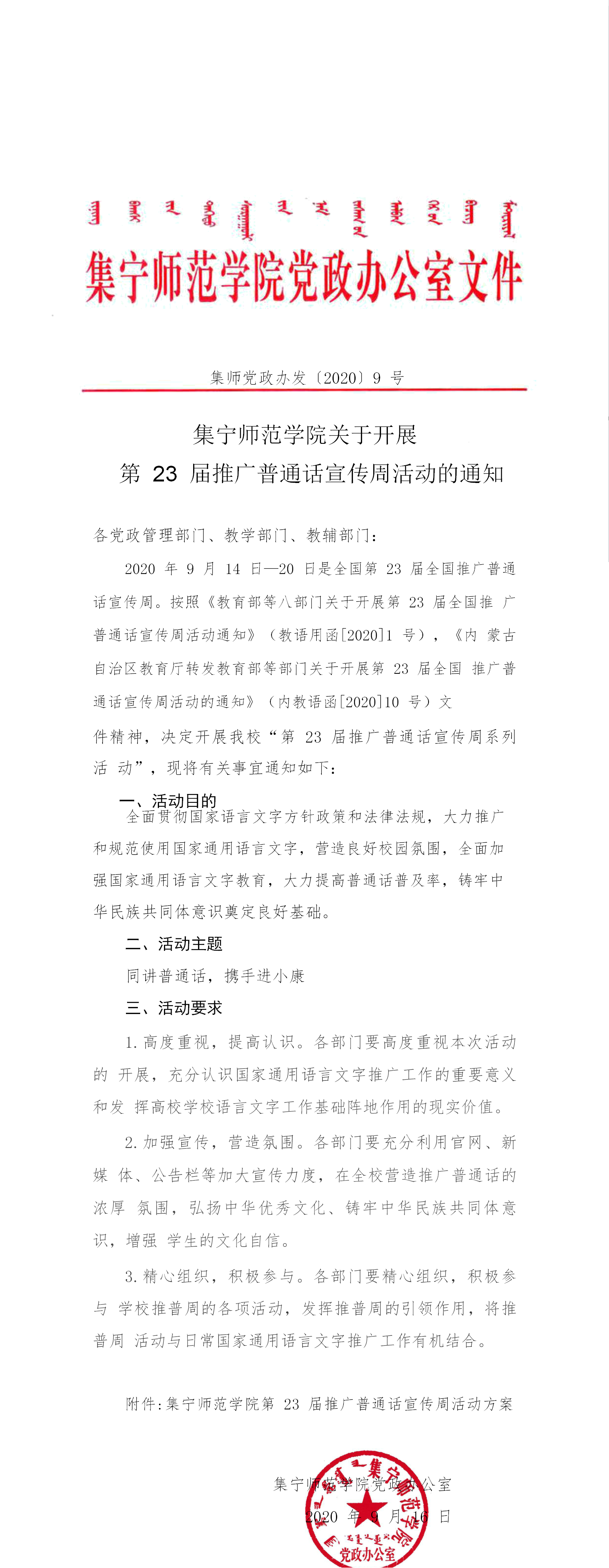 2026世界杯官方合作网站关于开展第23届推广普通话宣传周活动的通知