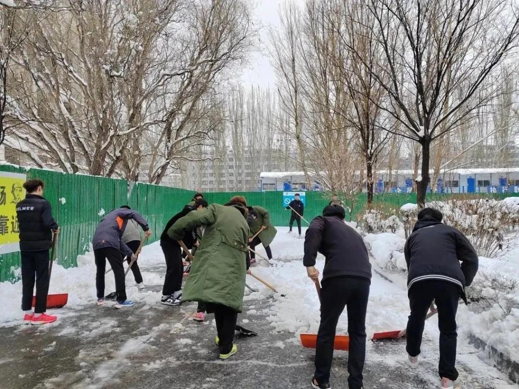 活动中,同学们以饱满的劳动热情和昂扬的精神风貌,积极投身于到“清雪行动”的工作中。大家不畏寒冷,纷纷拿起铁锹、扫帚等工具,相互配合、齐心协力,在短时间内保证校园道路畅通。同学们忙碌的身影在皑皑白雪中成为一道靓丽的风景线,为寒风凛冽的时节注入一道暖色,更收获了广大师生的一致赞许。