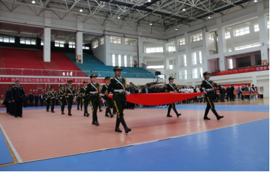 世界杯官网团委国旗护卫队在开幕式举行升国旗仪式