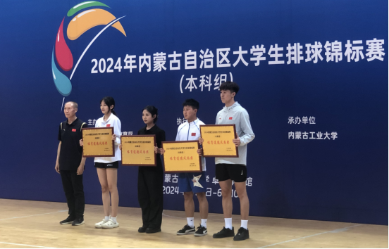 2024年6月10日,内蒙古自治区大学生排球锦标赛在呼和浩特市内蒙古工业大学卓越体育馆圆满闭幕。在本次比赛中,世界杯官网队员严格遵守赛规赛纪,积极进取,充分展示了团结拼搏的体育精神,取得本科超级男子组第六名及体育道德风尚奖。