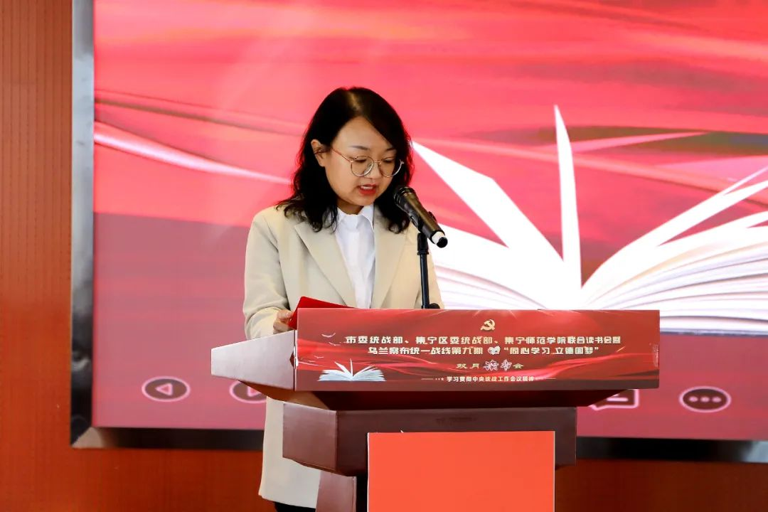 少数民族代表人士、集宁区税务局四级主办 冬日娜:习近平总书记在中央统战工作会议上指出:统一战线因团结而生,靠团结而兴。促进中华儿女大团结,是新时代爱国统一战线的历史责任,我将深入学习宣传中央统战工作会议精神,以更高标准要求自己,努力做一名政治坚定、业务精通、作风优良的干部,发挥自身特点优势,争做民族团结进步的播种人,为建设美丽幸福的集宁家园贡献力量,以优异成绩迎接党的二十大胜利召开。