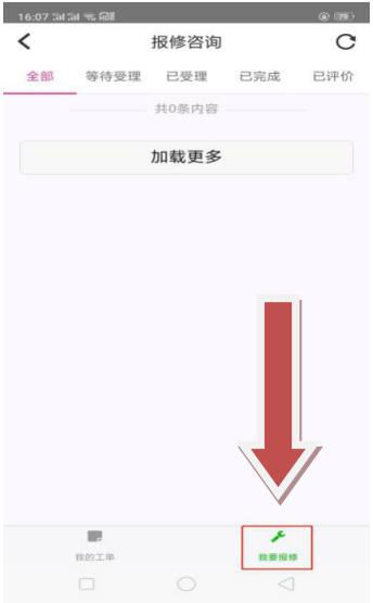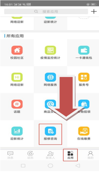 第二步:点击“应用”下滑,找到 “报修咨询“点开;