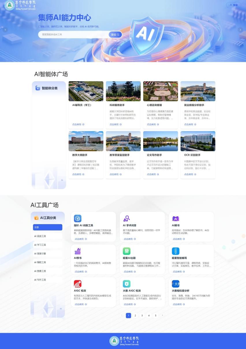 3.AI工具市场:集中整合了海量教学、科研、管理相关AI工具资源,涵盖智能课件制作、论文查重辅助、数据统计分析、文案生成、PPT智能优化等多元应用场景,教师可按需选用,大幅提升工作效率与成果质量。