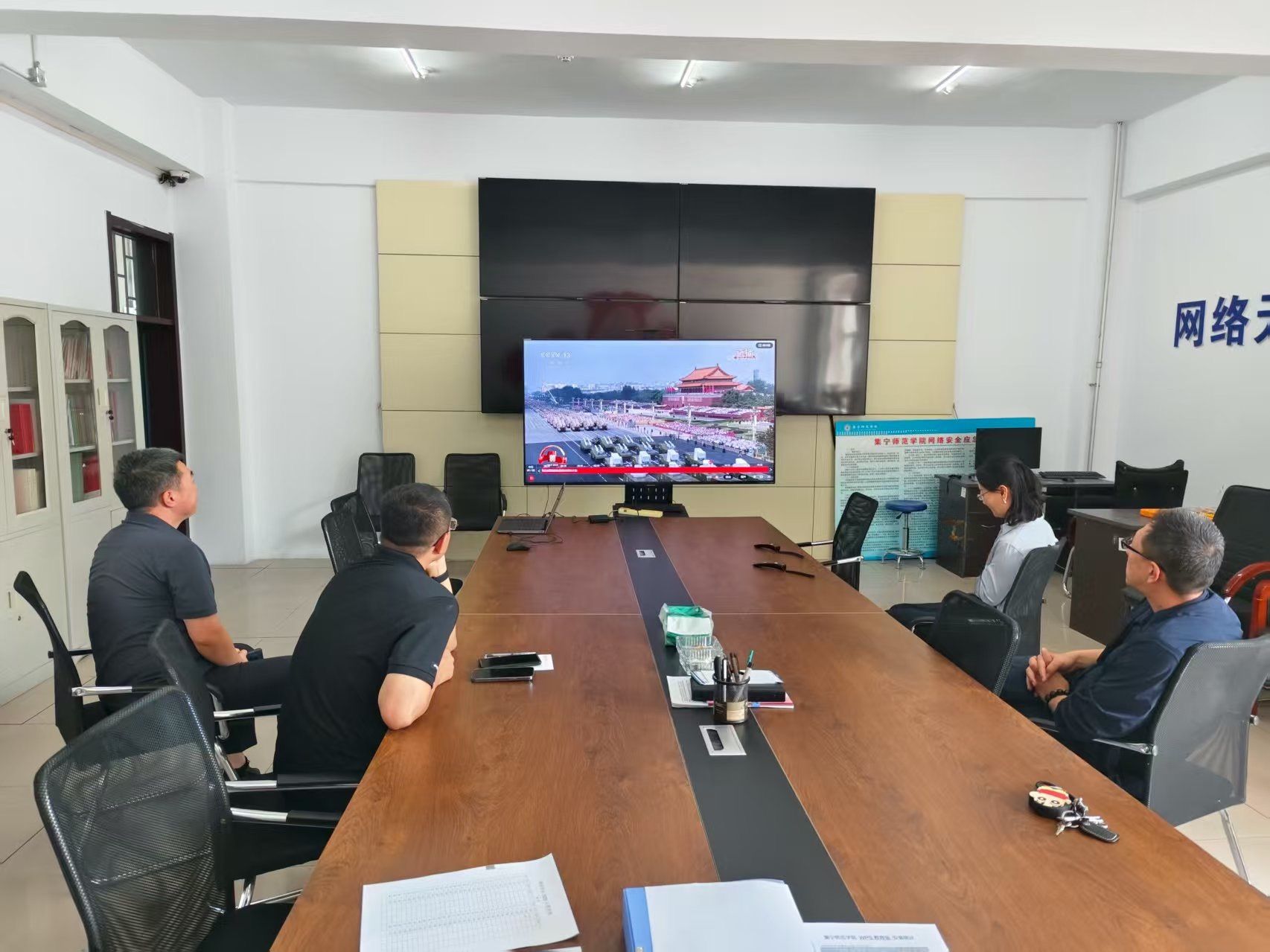 2025年9月3日,网络中心组织全体教师集中观看了纪念中国人民抗日战争暨世界反法西斯战争胜利80周年阅兵仪式。