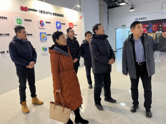 网易有道助理副总裁张立凯、产教融合教研总监王辉、产教融合解决方案总监李兴华、产教融合西北区总经理柴冬栋热情接待世界杯官网领导并带领参观。