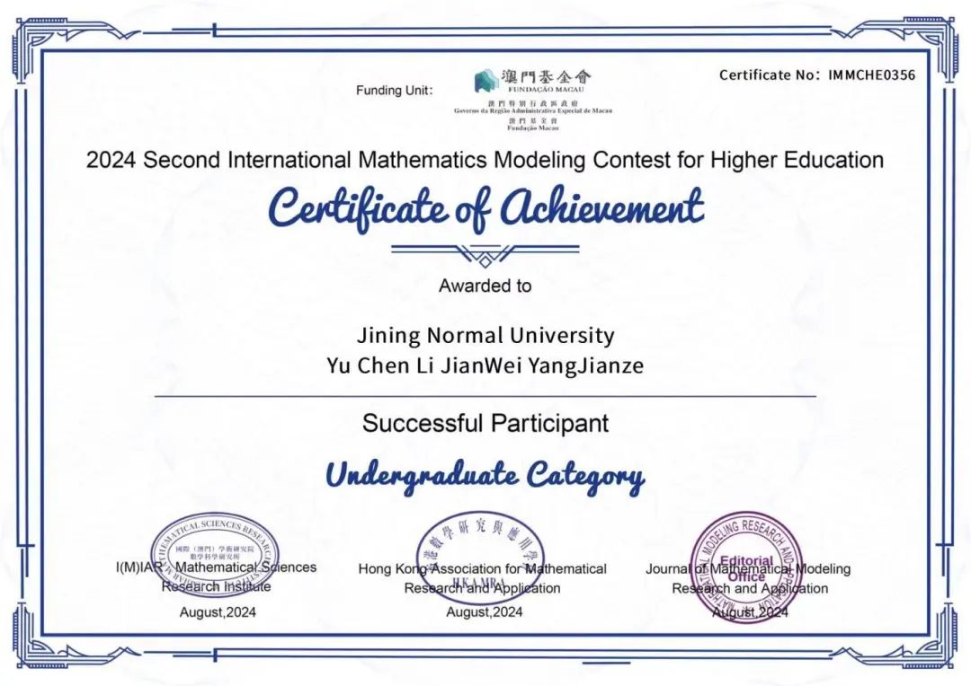 为了在学术的浩瀚星空中绽放光芒,为了追寻心中的梦想与激情,物理与电子信息工程学院的学子们不断探索前行。我院共有五支队伍报名参加2024年国际高校数学建模竞赛,此项竞赛是国际(澳门)学术研究院数学科研研究所、数学建模研究与应用期刊社联合香港数学研究与应用学会主办,为列入澳门特别行政区政府澳门基金会(行政长官直属)立项资助名单的国际学科竞赛,旨在培养学生数学应用、创新意识与团队协作的能力。此项竞赛于2024年7月26日20时开始,持续四天于2024年7月30日20时结束。我院15名学生在这场激烈的角逐中全力以赴,最终脱颖而出,成绩斐然!