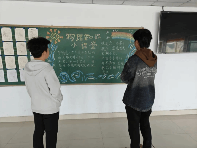 同学们被新颖的知识点吸引,纷纷驻足观看,利用自己的课余时间,学习物理知识,提升自己的专业素养、扩充自己的知识储备。