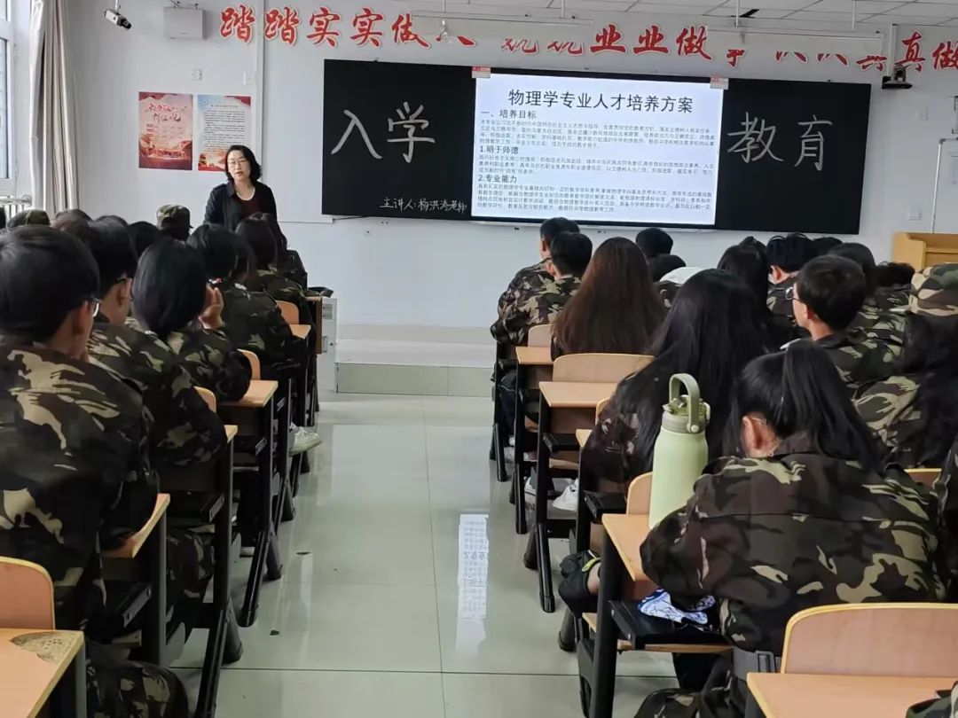 最后,杨洪涛老师鼓励新生们珍惜大学时光,勤奋学习,勇于创新,不断提升自己的综合素质和竞争力。活动现场气氛热烈,新生们积极提问,与杨老师进行了深入的交流和互动。通过此次入学教育,新生们不仅加深了对物理学专业的认识和理解,还明确了自己的学习目标和职业规划方向。他们纷纷表示将以饱满的热情和坚定的信念投入到物理学的学习和研究中去,努力成为具有创新精神和实践能力的优秀人才。