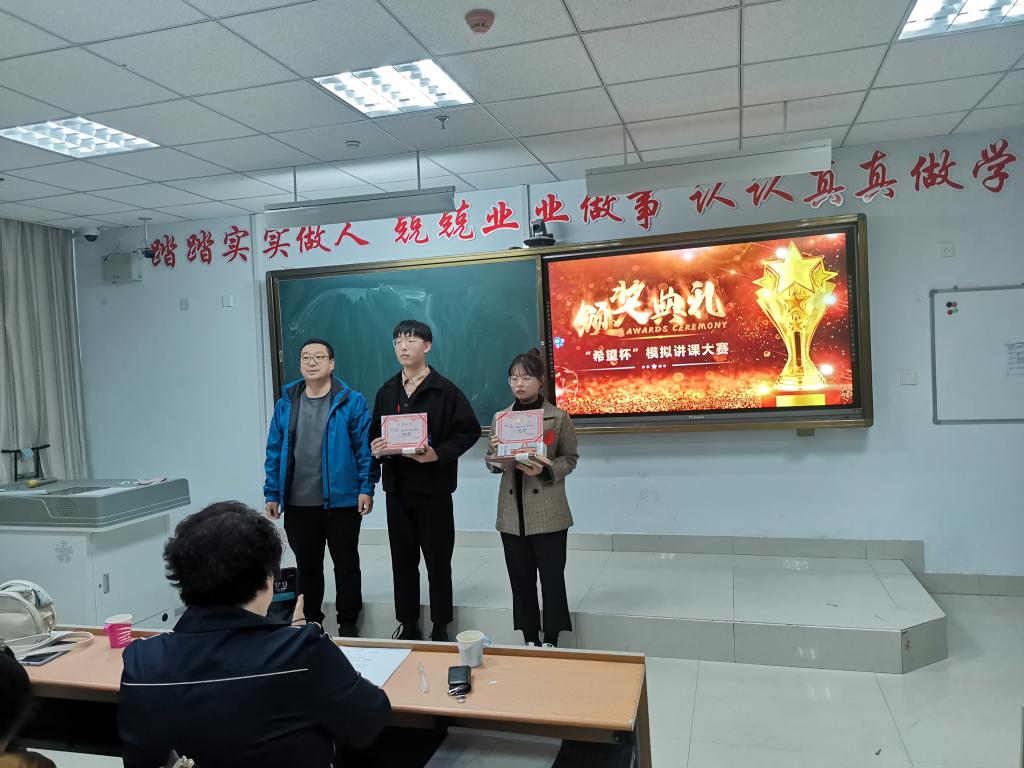 为丰富同学们的课余生活,提高学生的教学实践能力,加深学生对课堂教学的认识和理解,同时为内蒙古自治区第五届师范生教学技能大赛选拔优秀参赛选手,物理学院于10月15日下午3:30在逸夫楼405教室举办了“希望杯”模拟讲课大赛。