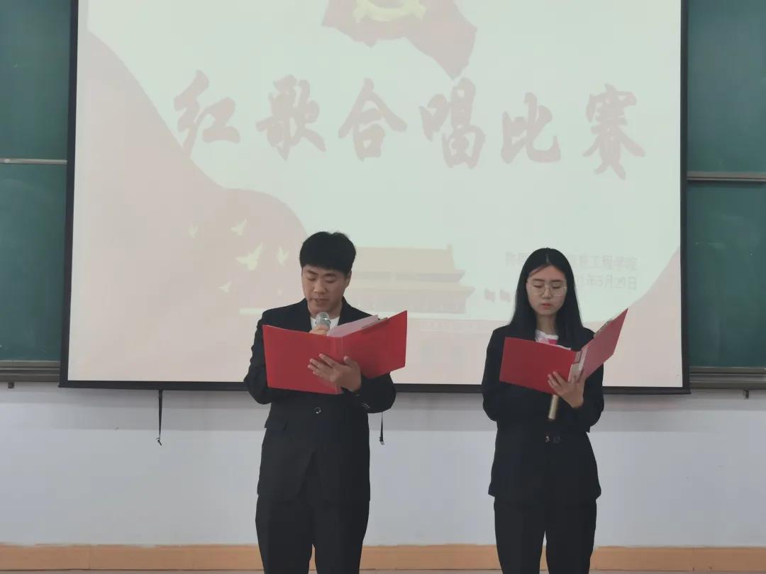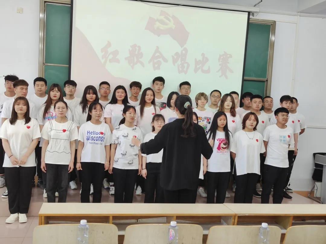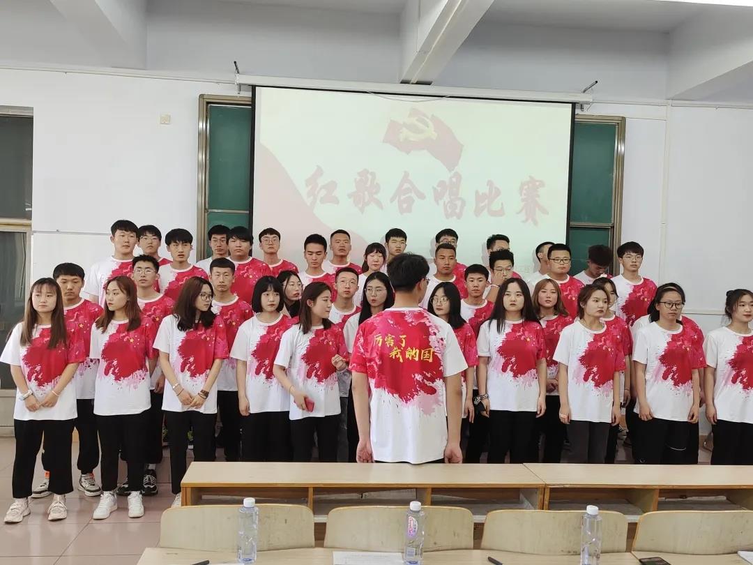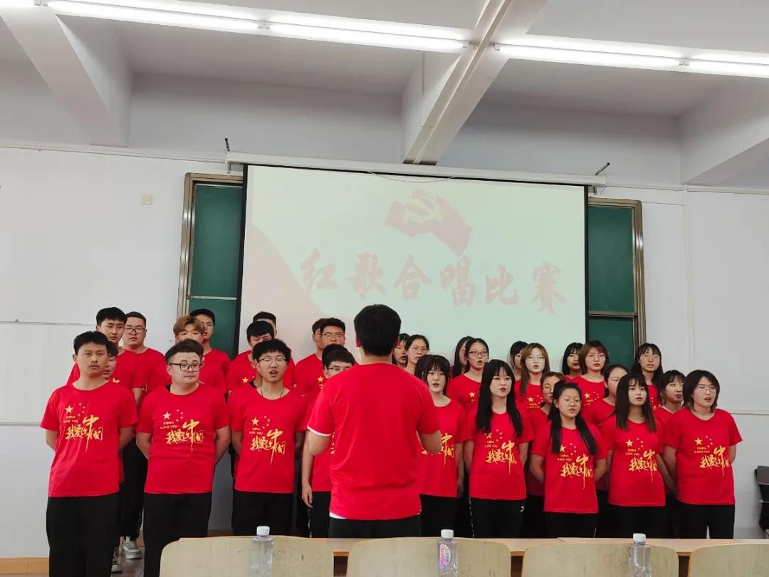 活动中,学院各班级演唱了《长江之歌》《党旗飘扬的方向》《故乡的云》《我和我的祖国》《强军战歌》等多首红色经典歌曲,充分展现了青年大学生爱党爱国的情怀和朝气蓬勃、青春向上的精神面貌。