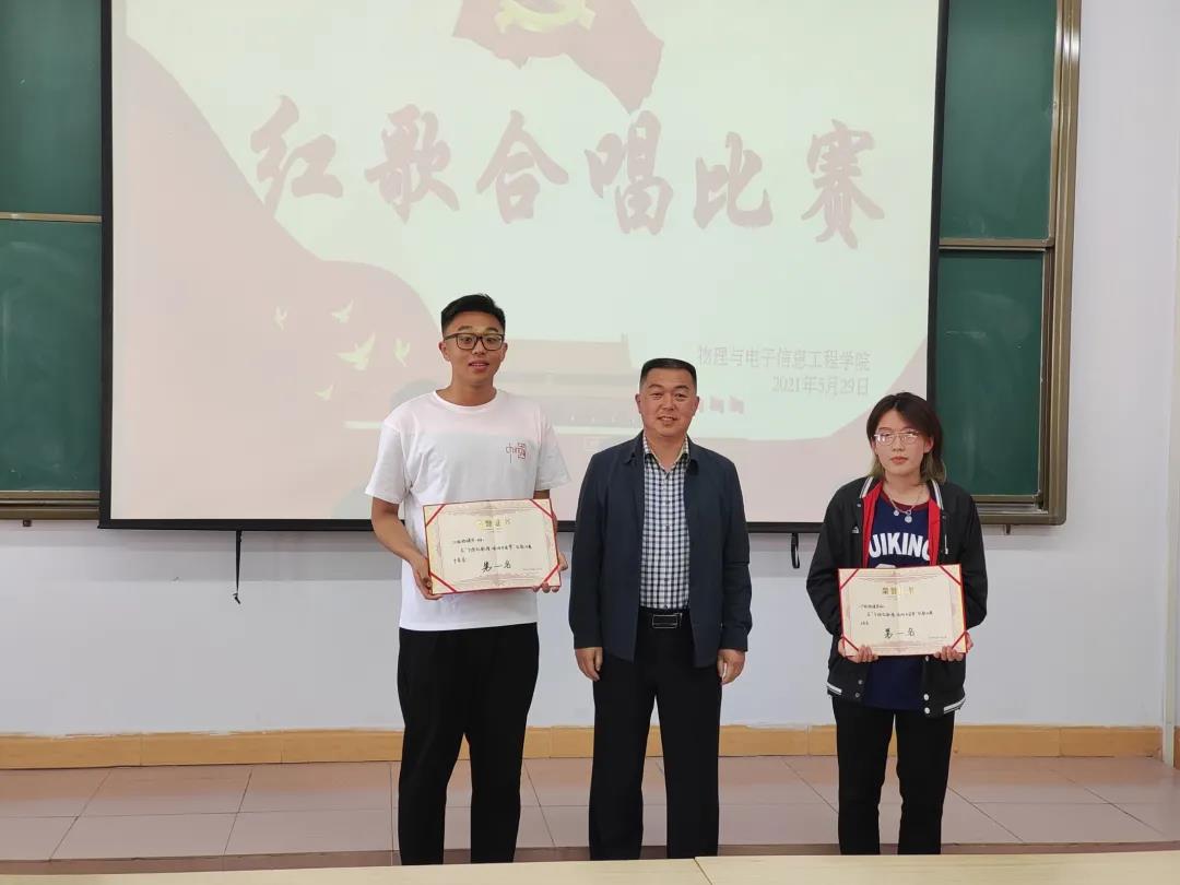 为庆祝建党100周年、根据学校党史学习教育安排,5月29日下午,2026世界杯官方合作网站物理与电子信息工程学院举办了“飞扬红歌情、唱响中国梦”红歌合唱比赛。