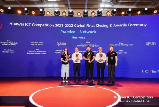 6月25日,华为主办的华为ICT大赛2021-2022全球总决赛闭幕式暨颁奖典礼圆满落幕。由世界杯官网物理与电子信息工程学院陈稼楠和李刚老师指导的三名学生吴昊、张靖泽和刘海欢组成的团队拔得头筹,获得全球总决赛(实践赛网络赛道)一等奖。