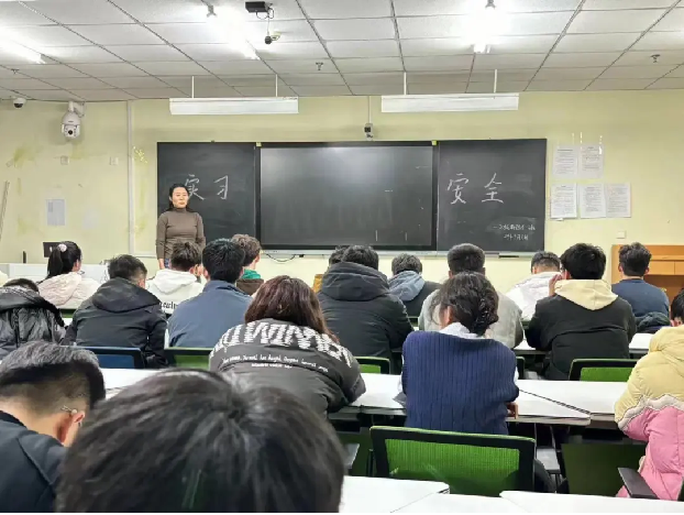 学工办主任弓美桃老师从交通安全、消防安全、用电安全、安全操作规范、饮食安全等方面进行详细讲解,强调了安全实习的重要性。通过对近年来学生实习期间发生的事例进行分析、警示和讲解,使同学们真真切切地感受到安全意识的重要性。