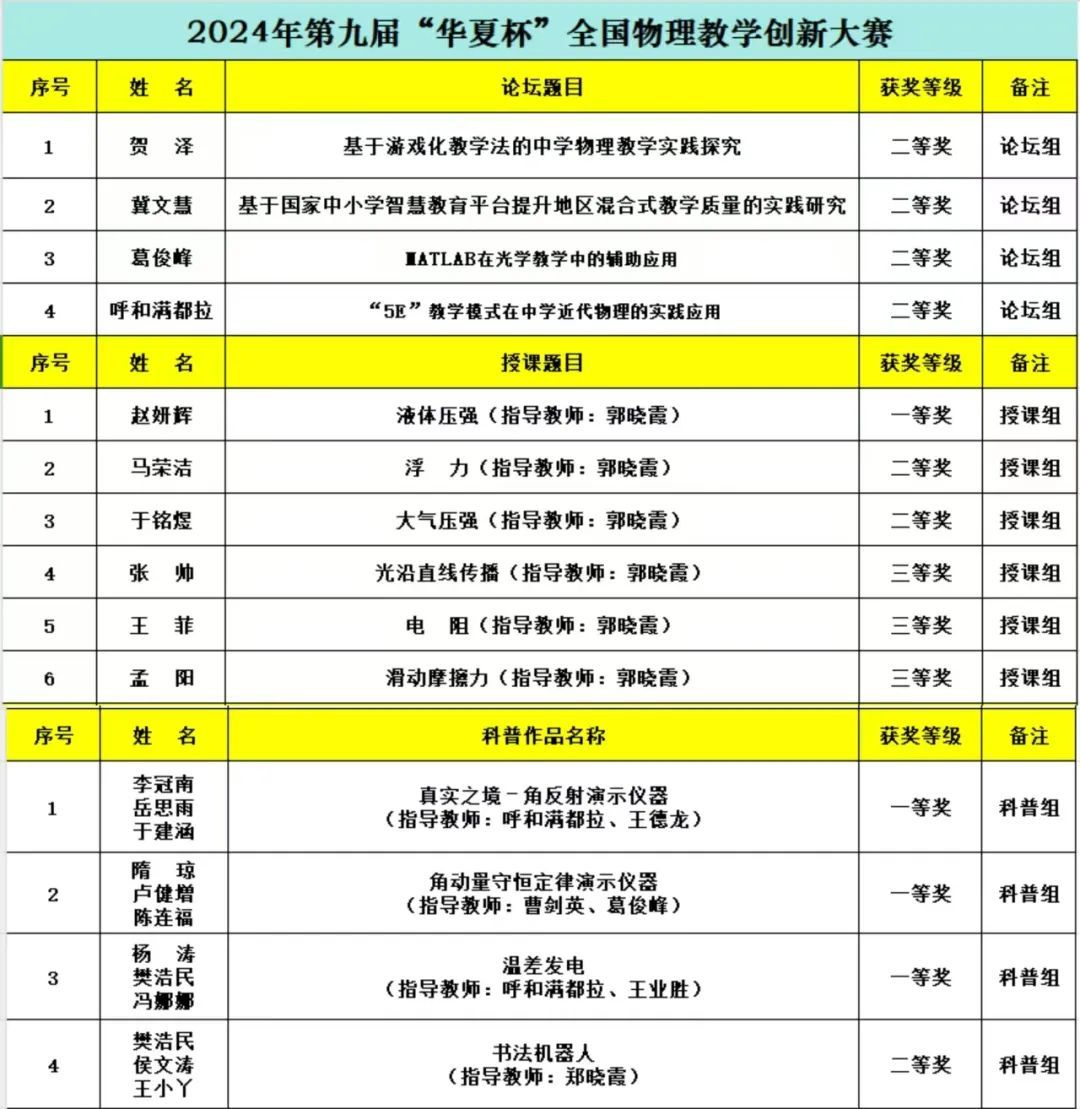 经过激烈的角逐,世界杯官网物理与电子信息工程学院学子在物理创新教学大赛赛道获得一等奖1项、二等奖2项、三等奖3项,物理教育研究论坛赛道获得二等奖4项,科普设计作品展示与讲演赛道获得一等奖3项、二等奖1项,郭晓霞教授被聘为赛事评委,隋琼、陈连福等同学组建的“角动量守恒定律演示仪器”组参加了优秀科普作品展演,世界杯官网同时获得本届竞赛的优秀组织奖。