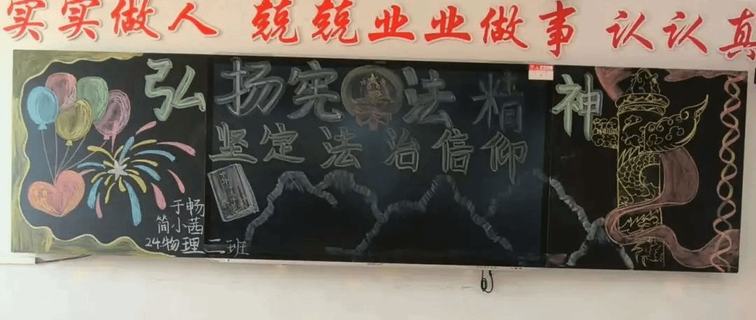 同学们结合相关宪法知识进行创作,一幅幅内容充实、构思新颖的黑板报体现出同学们对宪法的思考,展示出同学们自觉遵法、学法、守法、用法的良好风貌;一块块色彩斑斓,图文并茂的黑板报,凝聚着同学们对宪法的敬仰和理解。