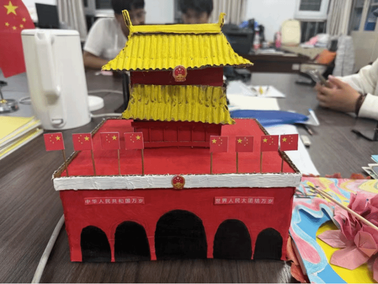 一方红纸,同学们用剪刀剪出了伟大庄严的天安门;几缕彩线,在经纬交错中画出了斑斓的图景;无数零件,在精心组装后构筑起梦想的每一件作品都是思考的结晶,每一次打磨都是心灵的对话。