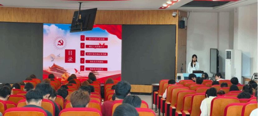 随后,由支部干事们相应介绍入党流程,从递交入党申请书、团组织推优、确定为入党积极分子,到接受培养教育、成为发展对象、确定预备党员,直至最终转为正式党员的完整过程,帮助新生建立起清晰、全面的入党认知框架。