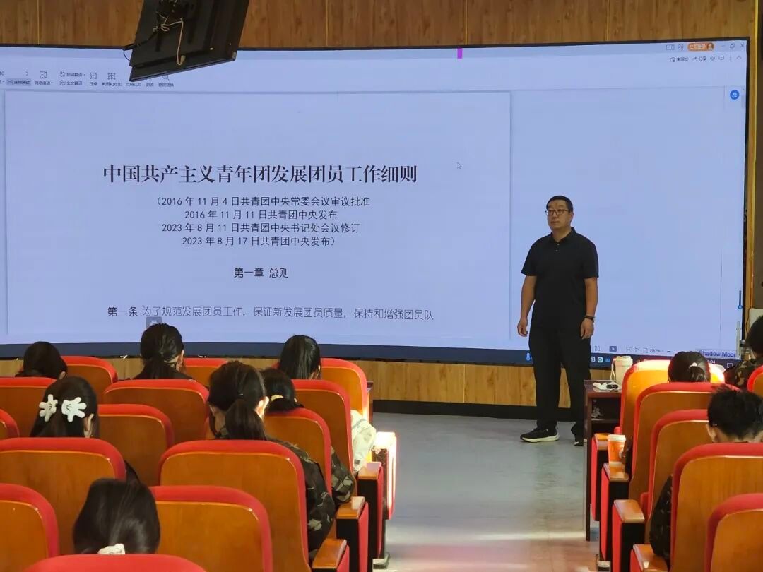 冀文慧老师首先对《中国共产主义青年团发展团员工作细则》进行了深入讲解,他强调了发展团员工作的严肃性和规范性,详细介绍了团员发展的流程和标准,引导新生树立正确的入团动机,鼓励同学们积极向团组织靠拢,在实践中锻炼自己,争取早日成为一名光荣的共青团员。