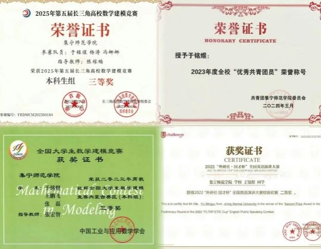 “一分耕耘,一分收获”。凭借在学习、志愿、竞赛、科研领域的综合突出表现,于铭煜收获了一系列沉甸甸的荣誉,成为学生群体中的典范。