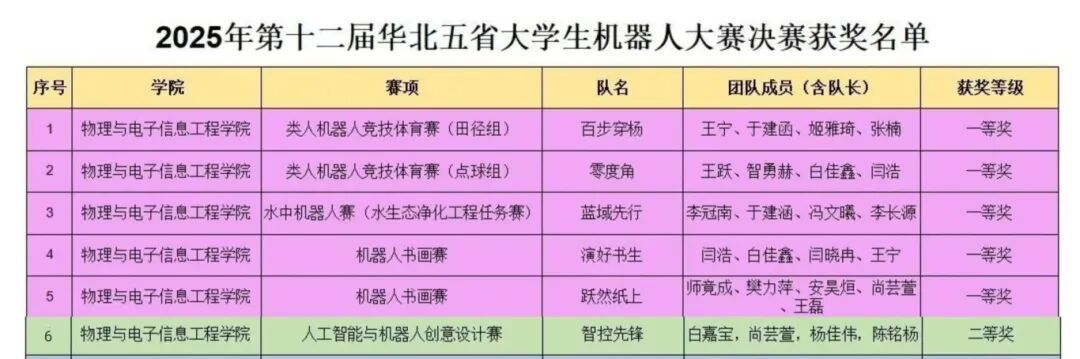 11月15日,第十二届华北五省(市、自治区)大学生机器人大赛决赛在北京信息科技大学落下帷幕,我院参赛的6支队伍全部获奖,荣获一等奖5项、二等奖1项,我院学子在赛事中表现亮眼,展现出物电学子扎实的科创实践能力与敢闯敢拼的精神风貌。