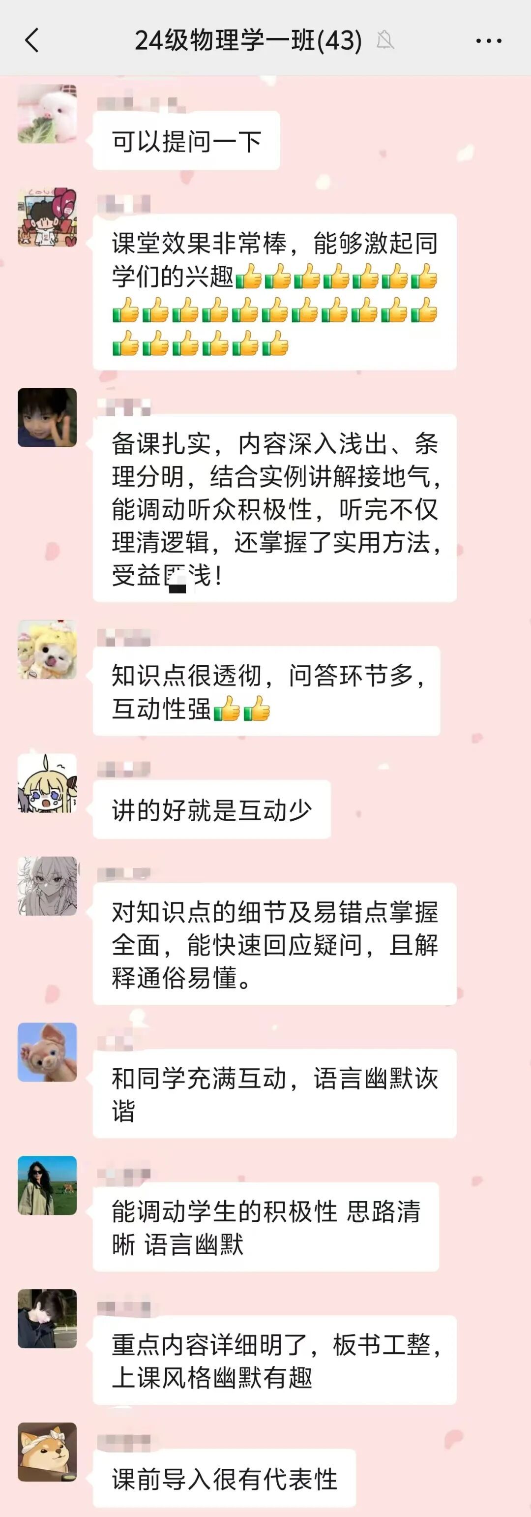 以师范生职业发展为核心导向,24级物理学一班为代表的物理学班级精心策划模拟讲课活动,让同学们在全流程实战中锤炼教学技能。活动中,学子们化身“授课教师”,完整覆盖教学设计、课件制作、课堂讲授、互动引导等教学关键环节。结合物理学抽象性特点,大家巧妙设计趣味实验、小组讨论等互动场景,将晦涩的物理原理转化为生动易懂的课堂内容,精准把握教学节奏与重难点呈现技巧。