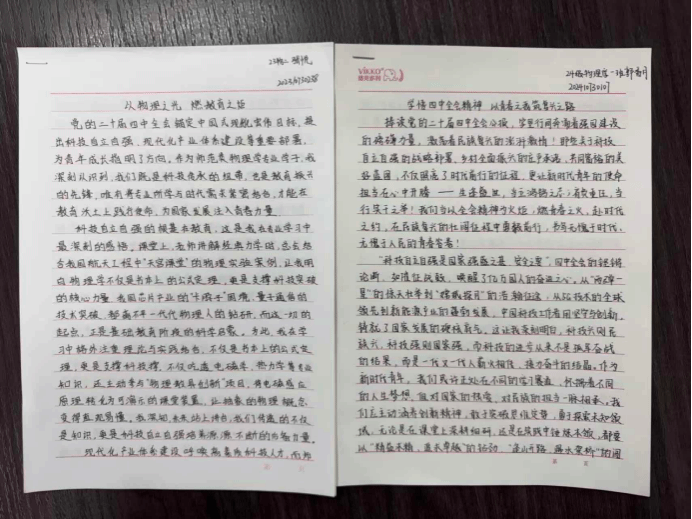 学子以笔抒怀,畅谈对全会精神的领悟。文章或立足专业思考科技自强,或着眼校园诠释青年担当,或展望未来锚定强国坐标。字里行间,既有对时代精神的深刻解读,更是将个人理想融入国家发展的青春宣言,展现了学子昂扬向上的精神风貌与坚实有力的使命担当。