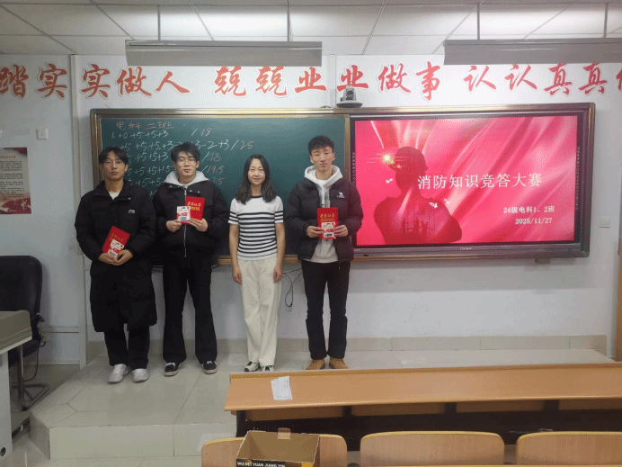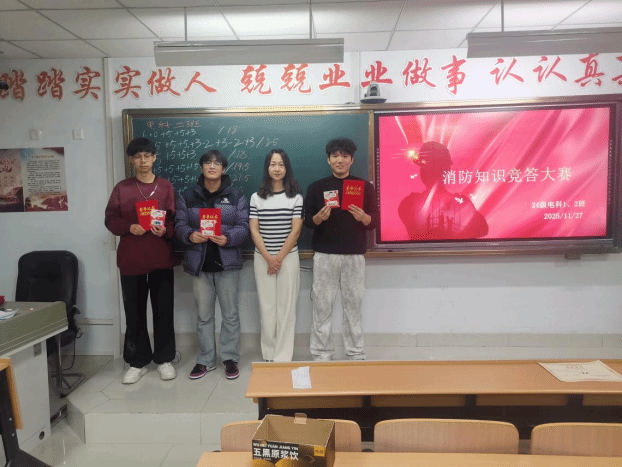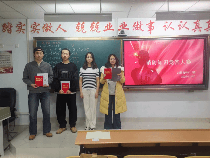 为推进学生工作建设月走深走实,强化学生安全素养,11月27日,物理与电子信息工程学院24级电子信息科学与技术班级举办“消防知识竞答大赛”,本次大赛由计志远和赵俊慧主持。各班级学子以三人小组为单位踊跃参与,在脑力比拼中筑牢安全防线,为平安校园建设注入青春力量。