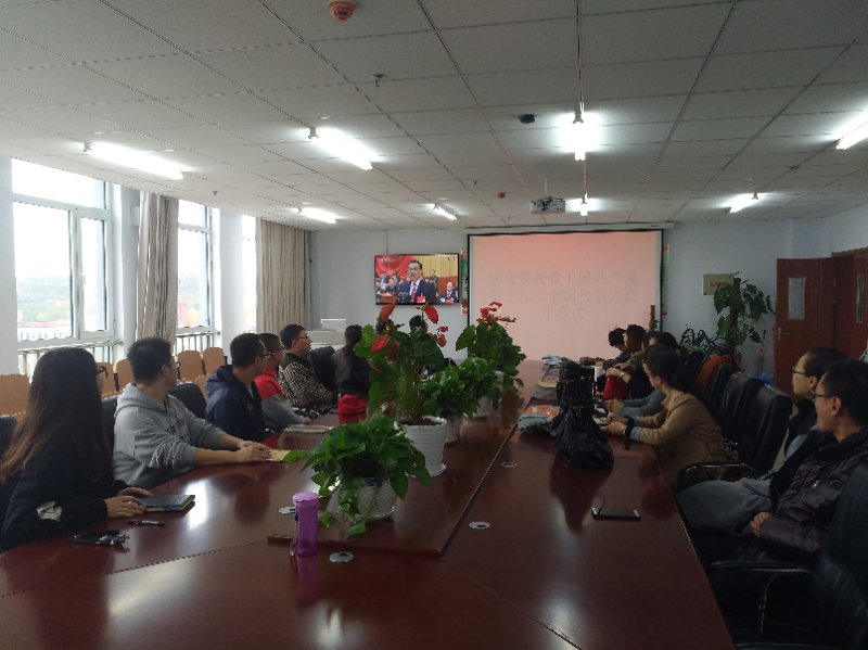 物理系党总支于10月18日星期三上午9:00在物理系办公室2Y809观看中国共产党十九大开幕式,全系无课教工、学生党员观看了十九大工作报告,大家聚精会神认真聆听了报告的全部内容,一直到12:40左右结束。精彩处大家不由自主鼓掌喝彩,倍受鼓舞。通过观看十九大开幕式,使全体党员对十九大报告有了粗浅的理解和认识,十九大是总结过去、研判现在、谋划未来的一次大会,是站在实现强起来的新的历史起点上,为实现中华民族伟大复兴而做动员做谋划的大会,它也是标志着中国特色社会主义进入新时代的大会。