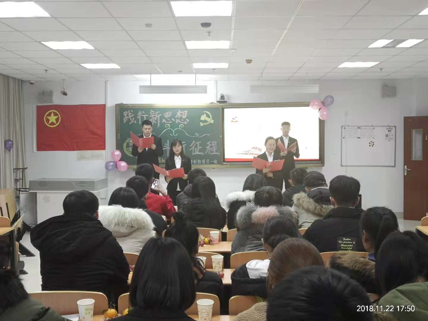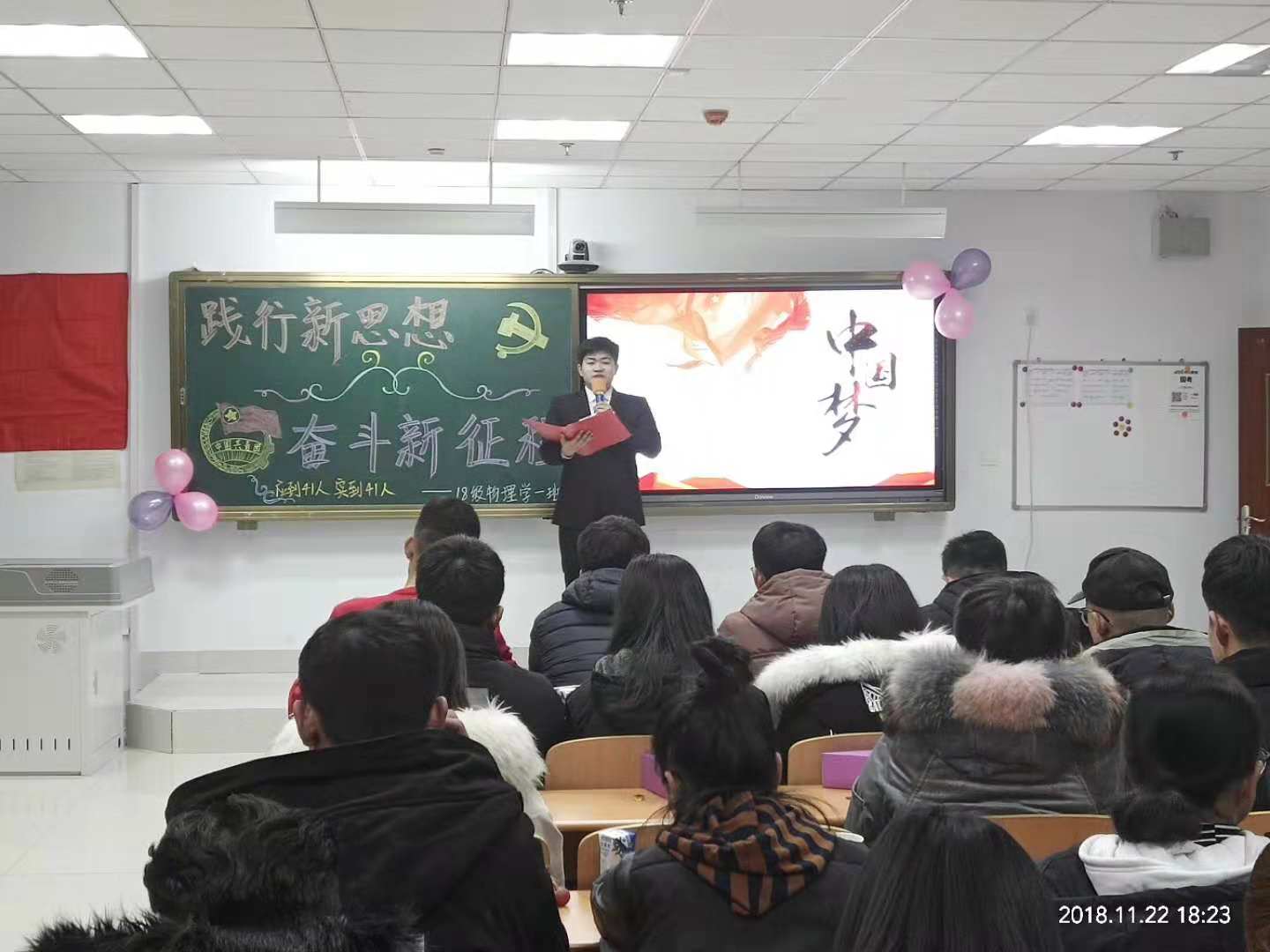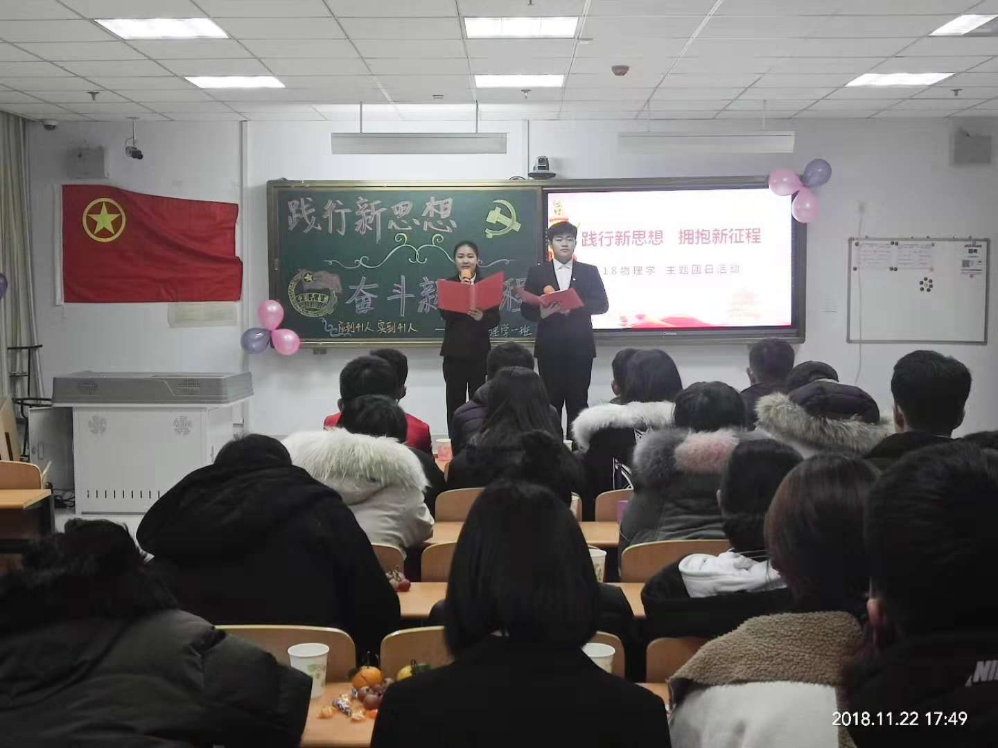 新时代,新征程。纵观十九大报告,感受最多的就是一个“新”。创新,发展,不仅是我们这一代的使命,更是我们这一代的荣光。11月22日下午,物理学院于逸夫楼405开展了“践行新思想 奋斗新时代”主题团日活动。本次团日活动邀请到了数学学院、外国语学院和经济与管理学院的团总支副书记,还有文学院、计算机学院、政法与历史文化学院、化学与化工学院、生命科学学院、体育学院、现代服务学院等各学院以及校学生会的代表参与活动。