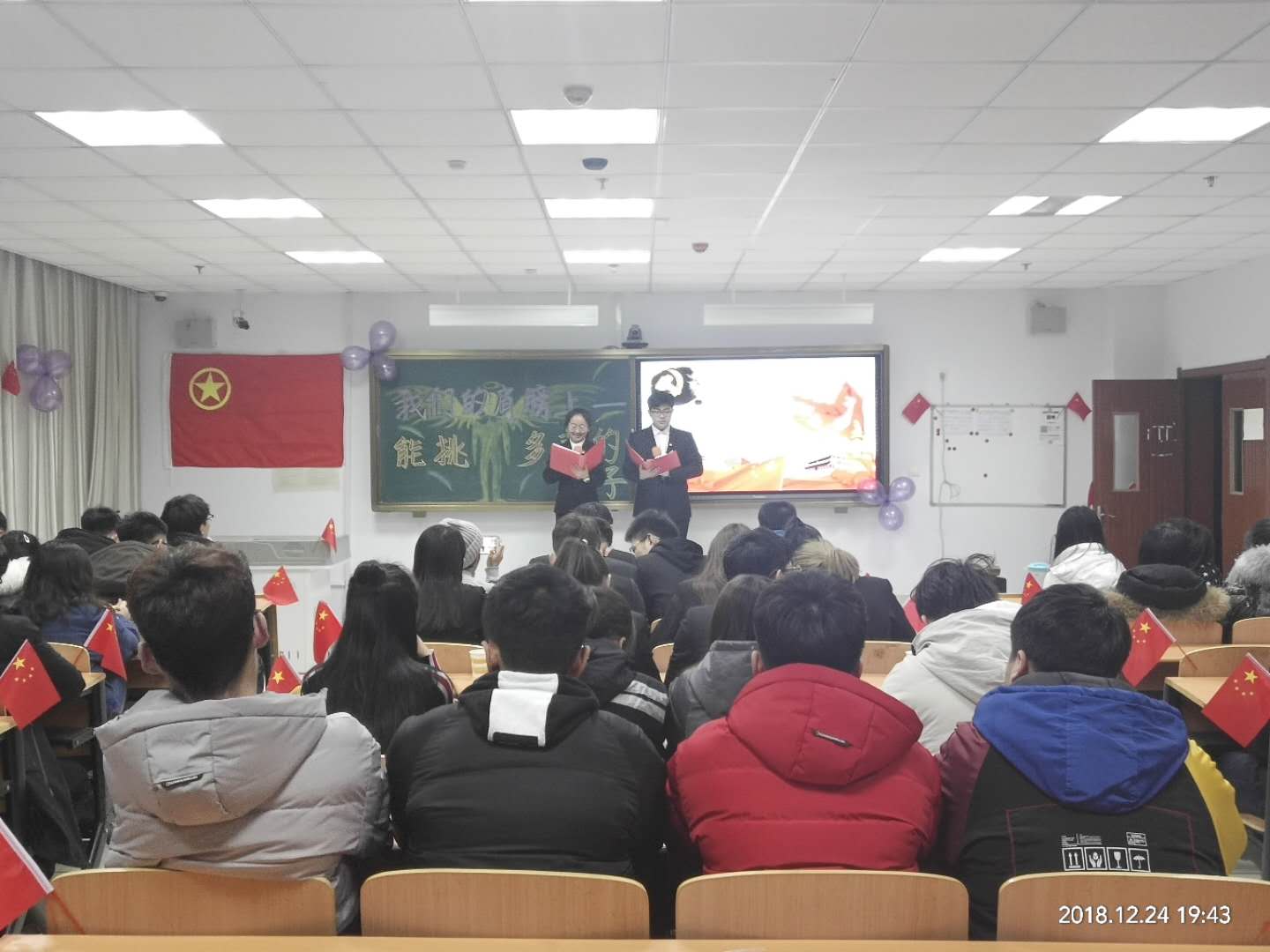 为响应习近平总书记就改革开放40周年重要讲话的号召,践行新思想,奋斗新征程,开创美好未来,明确新时代的责任和义务。物理学院于12月24日19:00在逸夫楼405,举办了“我的肩膀——能挑多重的担子”大家谈话活动。莅临的嘉宾有物理学院党总支副书记李刚老师、团总支负责人夏俊杰老师以及物理学院学生会主席和各部部长,团组织、团宣传委员。