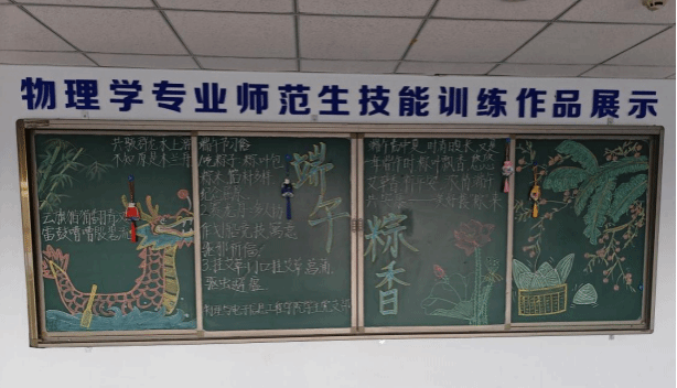 另外,为了弘扬中华优秀传统文化,营造浓厚的节日氛围,发挥教育与宣传功能,支部在逸夫楼五楼中厅提前绘制黑板报,通过展示端午节诗句、习俗等,帮助师生深入了解端午节文化内涵。