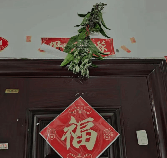 在乌兰察布市,人们会在门上粘贴“福”,并在“福”上挂一点艾草,象征着健康、平安、家庭美满,寓意着对家庭幸福的祈愿。