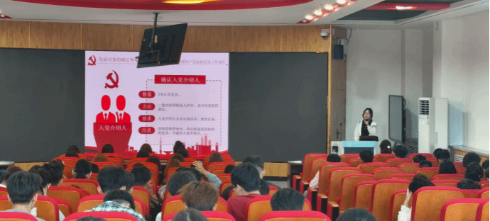 随后,由支部干事们相应介绍入党流程,从递交入党申请书、团组织推优、确定为入党积极分子,到接受培养教育、成为发展对象、确定预备党员,直至最终转为正式党员的完整过程,帮助新生建立起清晰、全面的入党认知框架。
