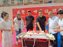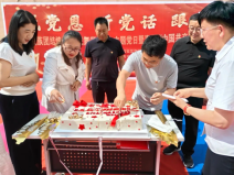 活动现场为老党员送上生日蛋糕,新老党员共同庆祝党的“政治生日”,重温入党初心。