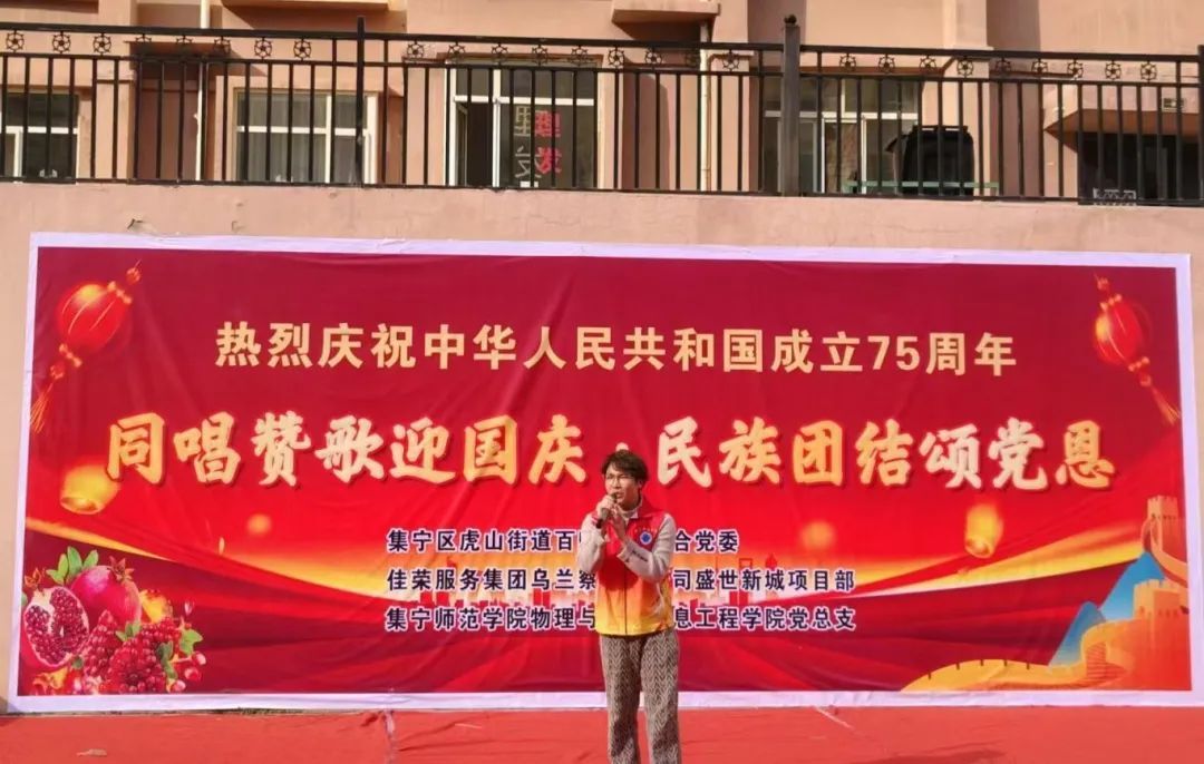 随着金秋十月的到来,我们的校园再次沉浸在一片喜庆的红色海洋之中,共同庆祝中华人民共和国成立75周年。为激发每一位学子的爱国热情,增强大家的历史使命感和社会责任感。在这个特殊的日子里,物理与电子信息工程学院联合集宁区虎山街道百旺社区共同举行“同唱赞歌迎国庆·民族团结颂党恩”活动,表达我们对祖国深深的祝福与热爱。