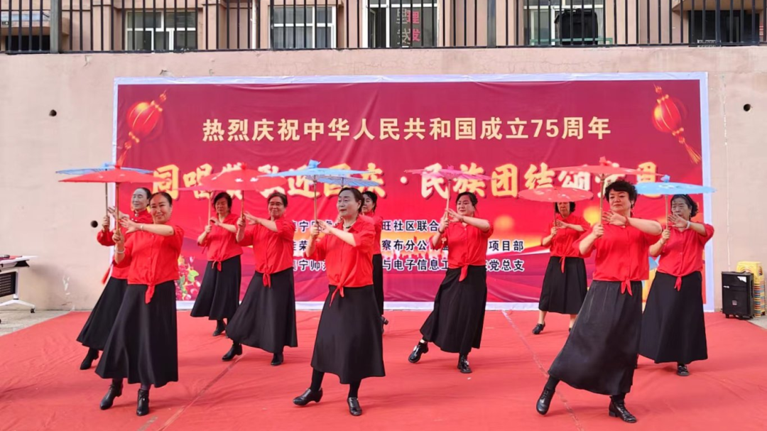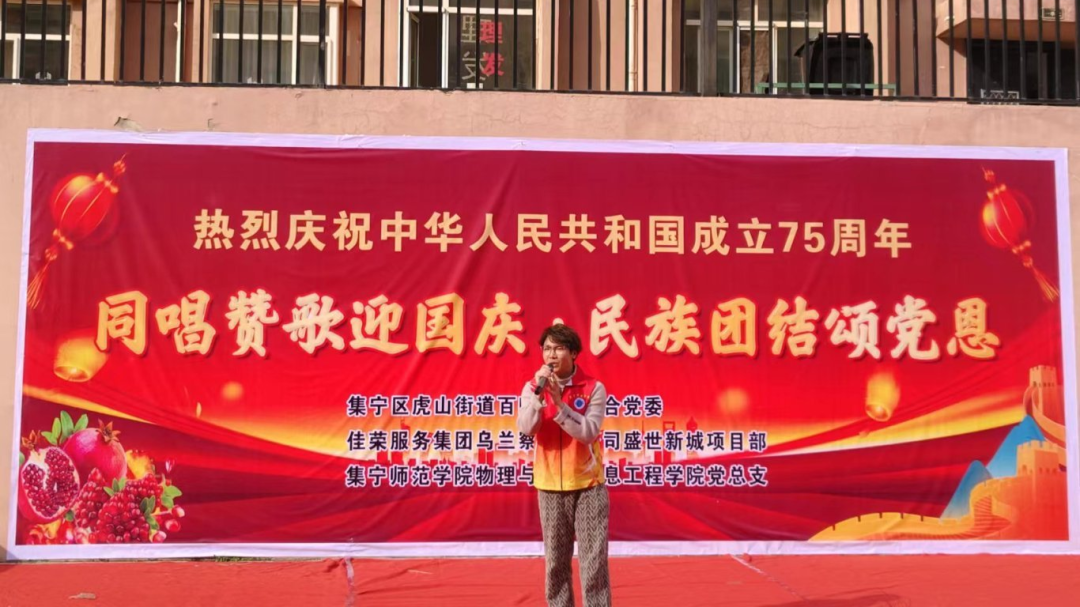 2024年10月1日——在这个举国欢腾的日子里,我们迎来了新中国75周年华诞。为喜迎国庆,物理与电子信息工程学院于2024年9月26日与集宁区虎山街道百旺社区举办了“同唱赞歌迎国庆·民族团结颂党恩”文艺表演,整个社区洋溢着浓厚的节日气氛,师生们与社区居民共同参与,通过多种形式的艺术表达,向祖国献上最真挚的祝福。