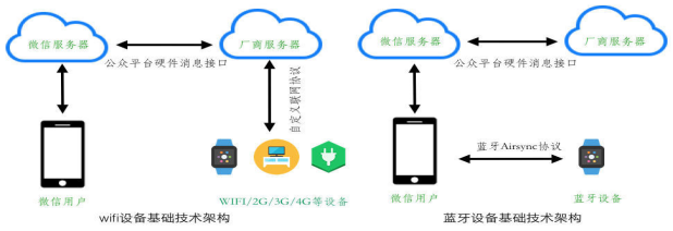 微信云以微信用户ID体系为基础,推出连接硬件设备的物联网解决方案。通过云端提供的AirSync、AirKiss、硬件JSAPI、直连SDK等技术,蓝牙设备、Wi-Fi设备与移动网络设备等智能设备都能便捷地实现与微信之间的互联和通讯,用户可以通过公众号查看和控制自己的手环、电视、空调和其它智能家电等。